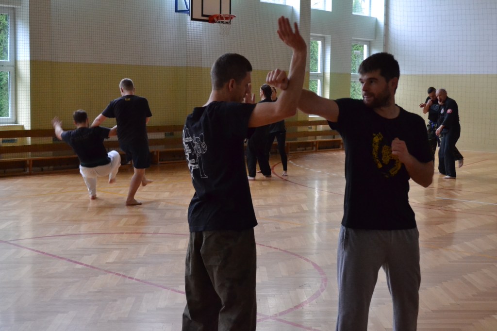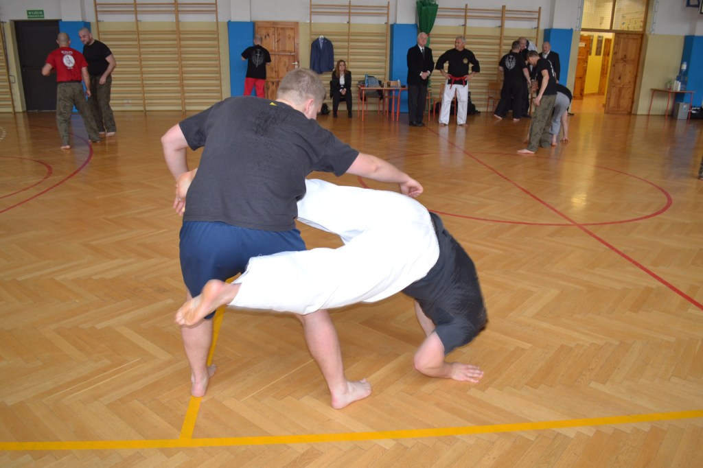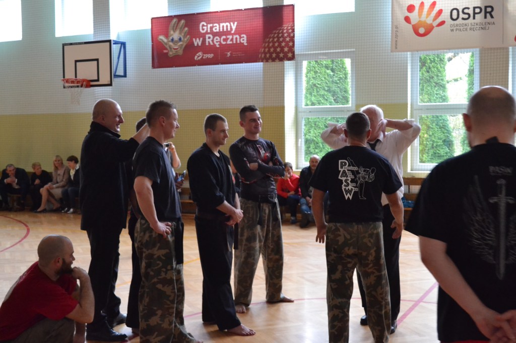 W październiku 1997 roku na sali gimnastycznej w Szkole Podstawowej w Posadzie Górnej odbyły się pierwsze zajęcia pszczyńskiej sztuki walki, prowadzone przez instruktora Pawła Śliwkę. Mimo, iż minęło ponad 20 lat, Paweł zajęcia prowadzi nadal. Z tej okazji wychowankowie Mistrza Pawła zorganizowali oficjalne obchody tej okrągłej rocznicy. Program całodziennego jubileuszu rozpoczynała Msza Święta, którą poprowadził kapelan Pszczyńskiej Akademii Sztuk Walki ks. Stanisław Jaromin. Współtowarzyszył mu tak bliski naszym sercom przyjaciel śp. Mistrza Józefa – Ojciec Ludwik Kordoń. To właśnie on po Mszy Świętej wygłosił katechezę „Któż jak Bóg”. W tym miejscu bardzo dziękujemy księdzu Proboszczowi Parafii Rymanów Zdrój za umożliwienie obchodów jubileuszu w tamtejszej Świątyni, a także Holy Voices i Panu Wojciechowi Farbańcowi za piękną oprawę muzyczną. Umocnieni słowami Księdza Stanisława i Ojca Ludwika udaliśmy się na salę gimnastyczną, gdzie obok naszych sekcyjnych instruktorów różnorakie techniki zaprezentowali zaproszeni goście – Mistrzowie Pszczyńskiej Akademii Sztuk Walki: Jacek Warchał, Ewald Przewoźnik, Aleksander Brudny, Jan Brudny, Krzysztof Drożniak i Bernard Górny. Bardzo miłą niespodzianką i prezentem zarazem od przybyłych instruktorów było przyznanie założycielowi naszej rymanowskiej sekcji wysokiego stopnia mistrzowskiego 6 DAN. Paweł i jego wychowankowie otrzymali również gratulacje i statuetkę od Pana Burmistrza Gminy Rymanów Wojciecha Farbańca, któremu bardzo dziękujemy za wsparcie okazywane nie tylko w tym dniu, ale przez cały okres naszej współpracy. Równie gorące podziękowania należą się Dyrekcji ZSP w Posadzie Górnej, zarówno za udostępnienie sali, jak i za okazane wsparcie i otwartość na ponowne nawiązanie współpracy w najbliższych miesiącach.