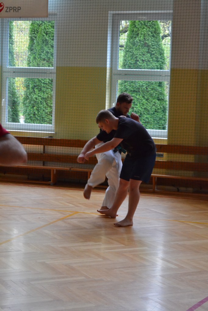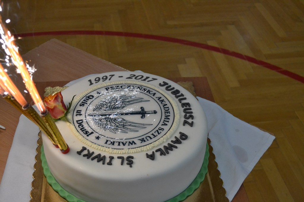 „Dwadzieścia lat minęło jak jeden dzień.” Myślę a nawet jestem pewny, że dzień 28 października 2017 roku pozostanie na zawsze w mojej pamięci. Tego co w tym dniu wydarzyło się w Rymanowie Zdroju nie da się opisać czy opowiedzieć to trzeba było przeżyć i poczuć na własnej skórze! PRZYJACIELE z sekcji w tajemnicy przede mną zorganizowali wspaniałe święto z okazji 20 – lecia działalności Pszczyńskiej Akademii Sztuk Walki na terenie Rymanowa. Na uroczystości pojawiło się tylu wspaniałych gości z Pszczyny m.in. Jan Brudny, Alek Brudny z żoną Wiesią, Jacek Warchał, „Misiu”, Krzysiek Drożniak oraz Bernard Górny. Świętowanie rozpoczęła Msza Św. prowadzona przez kapelana PASW ks. Stanisława Jaromira, uczestniczył w niej także wieloletni instruktor PASW O. Ludwik, który wygłosił wspaniałą katechezę na temat Pszczyńskiej Akademii. Po zakończonej mszy udaliśmy się na salę gimnastyczną w Posadzie Górnej, gdzie dokładnie 20 lat temu rozpoczęły się pierwsze zajęcia. Wspólny trening z zaproszonymi gośćmi to naprawdę była wielka frajda, niektóre osoby pewnie do dziś czują jeszcze techniki pokazywane przez gości.