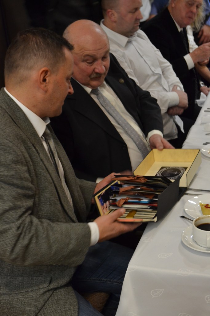 Na koniec wszyscy zgromadzeni na sali mieli okazję skosztować tortu i zobaczyć łzy wzruszenia naszego Przyjaciela i Trenera Pawła, który otrzymał od nas kilka upominków. Podziękowania należą się także małżonce Pawła – Kasi, gdyby nie jej wyrozumiałość, cierpliwość i wsparcie ten jubileusz nigdy by się nie odbył. Kasiu prosimy, nadal bądź tym cichym aniołem naszej sekcji Na koniec dziękujemy za obecność Panu Dariuszowi Królickiemu z gazety Nasz Rymanów oraz wszystkim bliskim osobom, które pojawiły się na tej imprezie i chciały z nami dzielić ten wspaniały czas. Po zakończeniu oficjalnych uroczystości Paweł, jego wychowankowie oraz zaproszeni goście wybrali się na wspólny obiad. Te kilka godzin spędzonych razem chyba wszystkich utwierdziło w tym, iż śp. Mistrz Józef stworzył coś naprawdę wyjątkowego i otaczał się wspaniałymi ludźmi. Drodzy Goście dziękujemy, że zechcieliście z nami przeżyć obchody 20 lat naszej sekcyjnej przygody z Pszczyńską Sztuką Walki – po raz kolejny staliście się naszą inspiracją oby na kolejne 20 lat